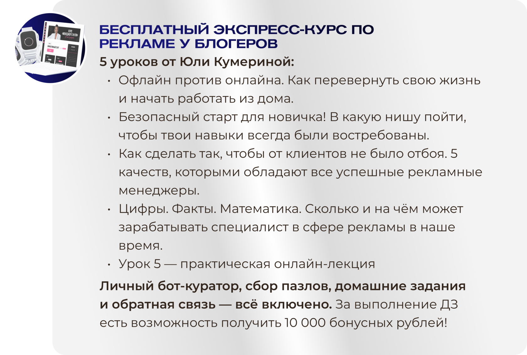 [{"lid":"1718914631381","ls":"10","loff":"","li_parent_id":"","li_type":"nm","li_title":"\u041a\u0430\u043a \u0432\u0430\u0441 \u0437\u043e\u0432\u0443\u0442?","li_name":"name","li_req":"y","li_nm":"name"},{"lid":"1718914742021","ls":"20","loff":"","li_parent_id":"","li_type":"ph","li_title":"\u0412\u0430\u0448 \u043a\u043e\u043d\u0442\u0430\u043a\u0442\u043d\u044b\u0439 \u043d\u043e\u043c\u0435\u0440 \u0442\u0435\u043b\u0435\u0444\u043e\u043d\u0430 (\u043c\u044b \u043d\u0438\u043a\u0443\u0434\u0430 \u043d\u0435 \u043f\u0435\u0440\u0435\u0434\u0430\u0435\u043c \u0434\u0430\u043d\u043d\u044b\u0435, \u0442\u043e\u043b\u044c\u043a\u043e \u0434\u043b\u044f \u0441\u0432\u044f\u0437\u0438 \u0441 \u0432\u0430\u043c\u0438)","li_req":"y","li_nm":"Phone"},{"lid":"1718914812982","ls":"30","loff":"","li_parent_id":"","li_type":"rd","li_title":"\u0427\u0435\u043c \u0432\u044b \u0441\u0435\u0439\u0447\u0430\u0441 \u0437\u0430\u043d\u0438\u043c\u0430\u0435\u0442\u0435\u0441\u044c?","li_variants":"\u041d\u0430 \u043f\u0435\u043d\u0441\u0438\u0438\n\u0412 \u0434\u0435\u043a\u0440\u0435\u0442\u0435\n\u0420\u0430\u0431\u043e\u0442\u0430\u044e \u0432 \u043d\u0430\u0439\u043c\u0435\n\u0414\u043e\u043c\u043e\u0445\u043e\u0437\u044f\u0439\u043a\u0430\n\u041d\u0435 \u0440\u0430\u0431\u043e\u0442\u0430\u044e\n\u041f\u0440\u0435\u0434\u043f\u0440\u0438\u043d\u0438\u043c\u0430\u0442\u0435\u043b\u044c","li_isownvariant":"y","li_ownvariant":"\u0414\u0440\u0443\u0433\u043e\u0435","li_radcb":"rb","li_req":"y","li_nm":"\u0427\u0435\u043c \u0432\u044b \u0441\u0435\u0439\u0447\u0430\u0441 \u0437\u0430\u043d\u0438\u043c\u0430\u0435\u0442\u0435\u0441\u044c?"},{"lid":"1718914877790","ls":"40","loff":"","li_parent_id":"","li_type":"rd","li_title":"\u041a\u0430\u043a\u043e\u0439 \u0443 \u0432\u0430\u0441 \u0441\u0440\u0435\u0434\u043d\u0438\u0439 \u0435\u0436\u0435\u043c\u0435\u0441\u044f\u0447\u043d\u044b\u0439 \u0434\u043e\u0445\u043e\u0434?","li_variants":"\u041d\u0435 \u0437\u0430\u0440\u0430\u0431\u0430\u0442\u044b\u0432\u0430\u044e\n\u0414\u043e 20 \u0442\u044b\u0441\u044f\u0447 \u0440\u0443\u0431\u043b\u0435\u0439\n\u041e\u0442 20 \u0434\u043e 40 \u0442\u044b\u0441\u044f\u0447 \u0440\u0443\u0431\u043b\u0435\u0439 \n\u041e\u0442 40 \u0434\u043e 60 \u0442\u044b\u0441\u044f\u0447 \u0440\u0443\u0431\u043b\u0435\u0439 \n\u041e\u0442 60 \u0434\u043e 80 \u0442\u044b\u0441\u044f\u0447 \u0440\u0443\u0431\u043b\u0435\u0439\n\u041e\u0442 80 \u0434\u043e 150 \u0442\u044b\u0441\u044f\u0447 \u0440\u0443\u0431\u043b\u0435\u0439 \n\u0411\u043e\u043b\u044c\u0448\u0435 150 \u0442\u044b\u0441\u044f\u0447 \u0440\u0443\u0431\u043b\u0435\u0439 ","li_radcb":"rb","li_req":"y","li_nm":"\u041a\u0430\u043a\u043e\u0439 \u0443 \u0432\u0430\u0441 \u0441\u0440\u0435\u0434\u043d\u0438\u0439 \u0435\u0436\u0435\u043c\u0435\u0441\u044f\u0447\u043d\u044b\u0439 \u0434\u043e\u0445\u043e\u0434?"},{"lid":"1718915001019","ls":"50","loff":"","li_parent_id":"","li_type":"ta","li_title":"\u041a\u0430\u043a\u0430\u044f \u0443 \u0432\u0430\u0441 \u043c\u0435\u0447\u0442\u0430 \u0438\u043b\u0438 \u0446\u0435\u043b\u044c? \u0417\u0430\u0440\u0430\u0431\u043e\u0442\u0430\u0432 150 000\u20bd \u043d\u0430 \u0440\u0435\u043a\u043b\u0430\u043c\u0435, \u043a\u0443\u0434\u0430 \u0431\u044b \u0432\u044b \u043f\u043e\u0442\u0440\u0430\u0442\u0438\u043b\u0438 \u044d\u0442\u0438 \u0434\u0435\u043d\u044c\u0433\u0438?","li_rows":"4","li_req":"y","li_nm":"\u041a\u0430\u043a\u0430\u044f \u0443 \u0432\u0430\u0441 \u043c\u0435\u0447\u0442\u0430 \u0438\u043b\u0438 \u0446\u0435\u043b\u044c? \u0417\u0430\u0440\u0430\u0431\u043e\u0442\u0430\u0432 150 000\u20bd \u043d\u0430 \u0440\u0435\u043a\u043b\u0430\u043c\u0435, \u043a\u0443\u0434\u0430 \u0431\u044b \u0432\u044b \u043f\u043e\u0442\u0440\u0430\u0442\u0438\u043b\u0438 \u044d\u0442\u0438 \u0434\u0435\u043d\u044c\u0433\u0438?"},{"lid":"1722362023169","ls":"60","loff":"","li_parent_id":"","li_type":"rd","li_title":"\u041a\u0430\u043a\u0430\u044f \u0443 \u0432\u0430\u0441 \u0433\u043e\u0442\u043e\u0432\u043d\u043e\u0441\u0442\u044c \u0437\u0430\u0445\u043e\u0434\u0438\u0442\u044c \u043d\u0430 \u043e\u0431\u0443\u0447\u0435\u043d\u0438\u0435, \u0435\u0441\u043b\u0438 \u0431\u0443\u0434\u0435\u0442 \u0432\u043e\u0437\u043c\u043e\u0436\u043d\u043e\u0441\u0442\u044c \u0432\u0437\u044f\u0442\u044c \u043e\u0431\u0443\u0447\u0435\u043d\u0438\u0435 \u0432 \u0440\u0430\u0441\u0441\u0440\u043e\u0447\u043a\u0443 \u0441 \u043e\u043f\u043b\u0430\u0442\u043e\u0439 \u0442\u043e\u043b\u044c\u043a\u043e \u0447\u0435\u0440\u0435\u0437 \u043c\u0435\u0441\u044f\u0446. \u041e\u0446\u0435\u043d\u0438\u0442\u0435 \u0441\u0432\u043e\u044e \u0433\u043e\u0442\u043e\u0432\u043d\u043e\u0441\u0442\u044c:","li_variants":"\u041c\u0430\u043a\u0441\u0438\u043c\u0430\u043b\u044c\u043d\u0430\u044f\n\u0412\u044b\u0441\u043e\u043a\u0430\u044f\n\u0421\u0440\u0435\u0434\u043d\u044f\u044f\n\u0422\u043e\u0447\u043d\u043e \u043d\u0435 \u0433\u043e\u0442\u043e\u0432\u0430","li_radcb":"rb","li_req":"y","li_nm":"\u041a\u0430\u043a\u0430\u044f \u0443 \u0432\u0430\u0441 \u0433\u043e\u0442\u043e\u0432\u043d\u043e\u0441\u0442\u044c \u0437\u0430\u0445\u043e\u0434\u0438\u0442\u044c \u043d\u0430 \u043e\u0431\u0443\u0447\u0435\u043d\u0438\u0435, \u0435\u0441\u043b\u0438 \u0431\u0443\u0434\u0435\u0442 \u0432\u043e\u0437\u043c\u043e\u0436\u043d\u043e\u0441\u0442\u044c \u0432\u0437\u044f\u0442\u044c \u043e\u0431\u0443\u0447\u0435\u043d\u0438\u0435 \u0432 \u0440\u0430\u0441\u0441\u0440\u043e\u0447\u043a\u0443 \u0441 \u043e\u043f\u043b\u0430\u0442\u043e\u0439 \u0442\u043e\u043b\u044c\u043a\u043e \u0447\u0435\u0440\u0435\u0437 \u043c\u0435\u0441\u044f\u0446. \u041e\u0446\u0435\u043d\u0438\u0442\u0435 \u0441\u0432\u043e\u044e \u0433\u043e\u0442\u043e\u0432\u043d\u043e\u0441\u0442\u044c:"},{"lid":"1722362068678","ls":"70","loff":"","li_parent_id":"","li_type":"rd","li_title":"\u0412 \u043a\u0430\u043a\u0443\u044e \u0441\u0442\u043e\u0438\u043c\u043e\u0441\u0442\u044c \u0432\u044b \u043e\u0446\u0435